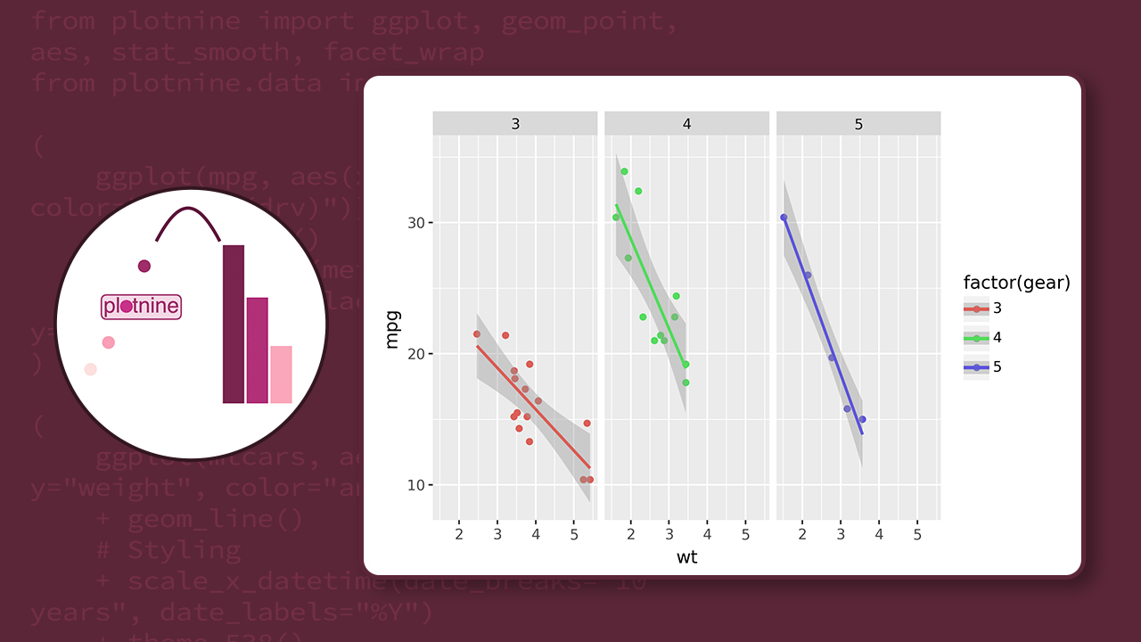 A translation of the visualisation chapters from “R for Data Science” to Python using Plotnine and Pandas. This is a comprehensive introduction on the Grammar of Graphics with plotnine.