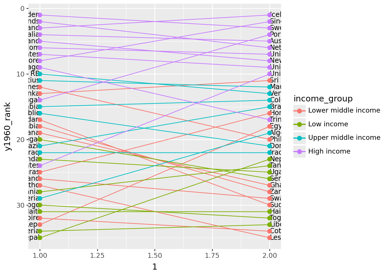 + geom_point(aes(1, "y1960_rank", color="income_group"), size=2.5)