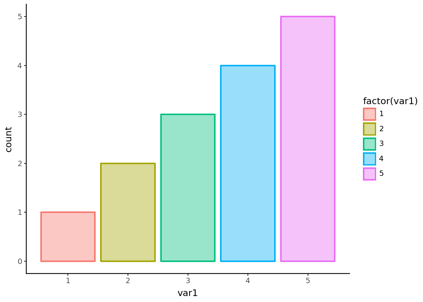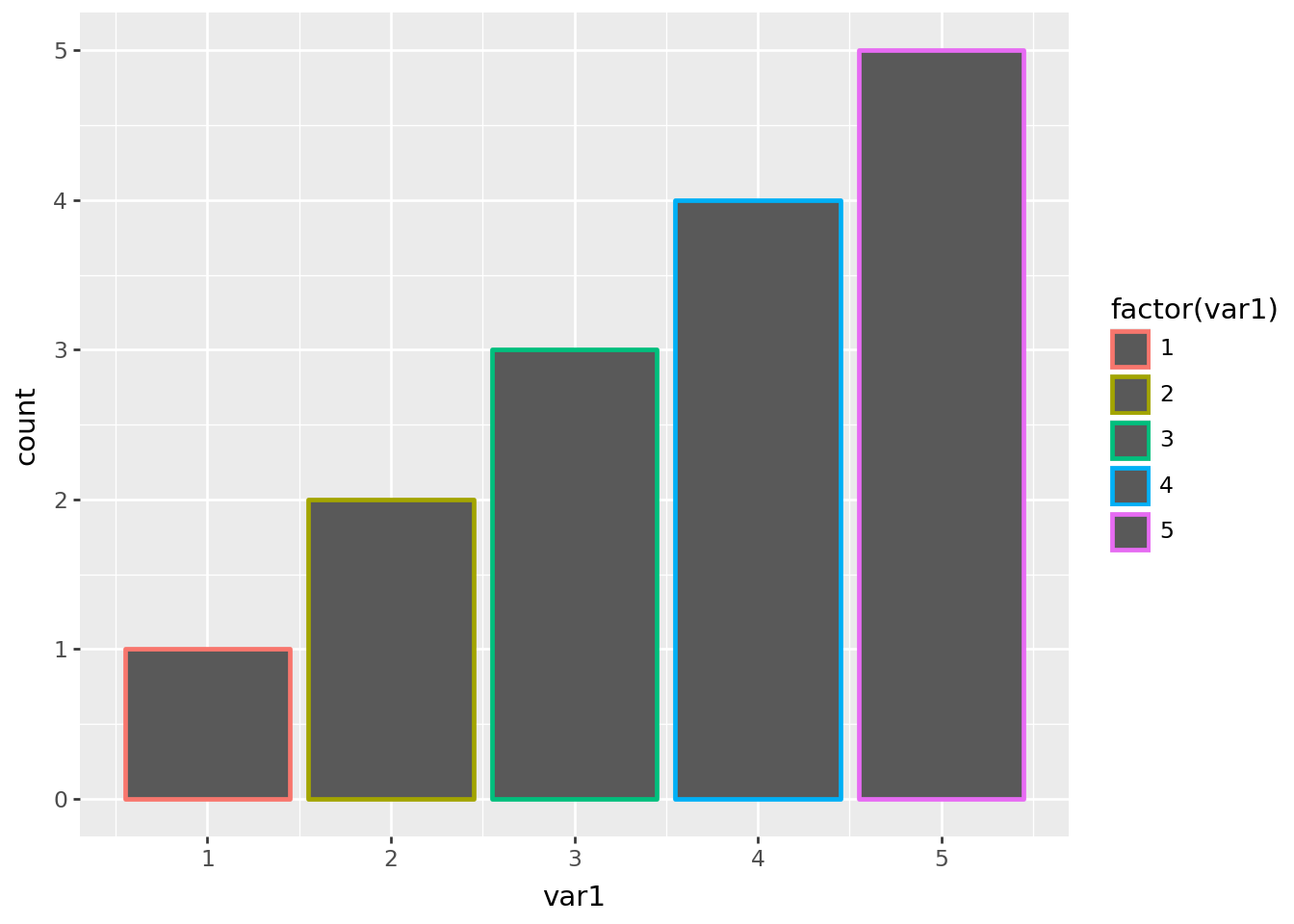 ggplot(df, aes("var1", color="factor(var1)"))