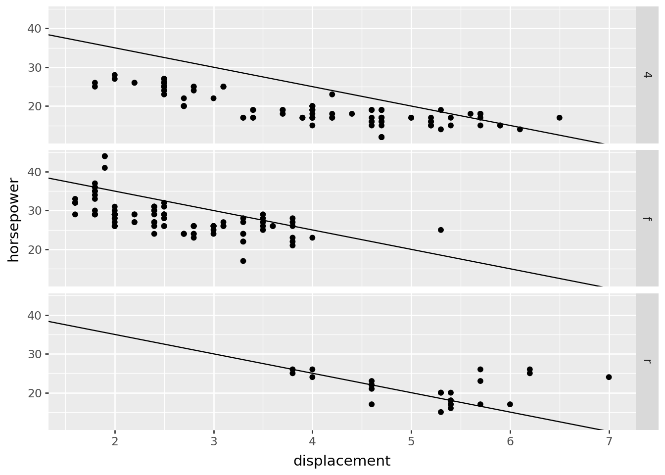 from plotnine import ggplot, aes, geom_point, labs, geom_abline, facet_grid