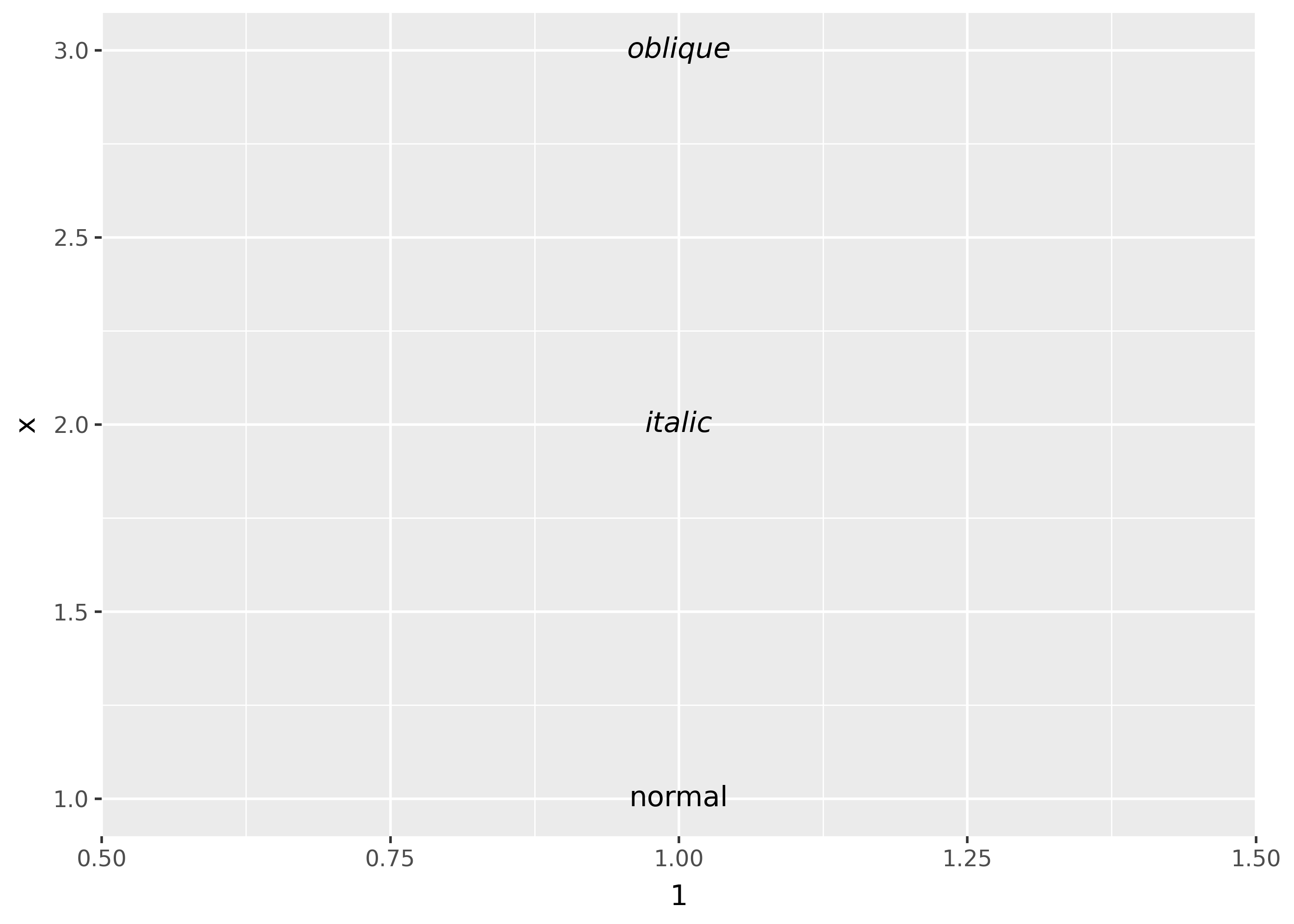 df = pd.DataFrame({"x": [1, 2, 3], "fontstyle": ["normal", "italic", "oblique"]})