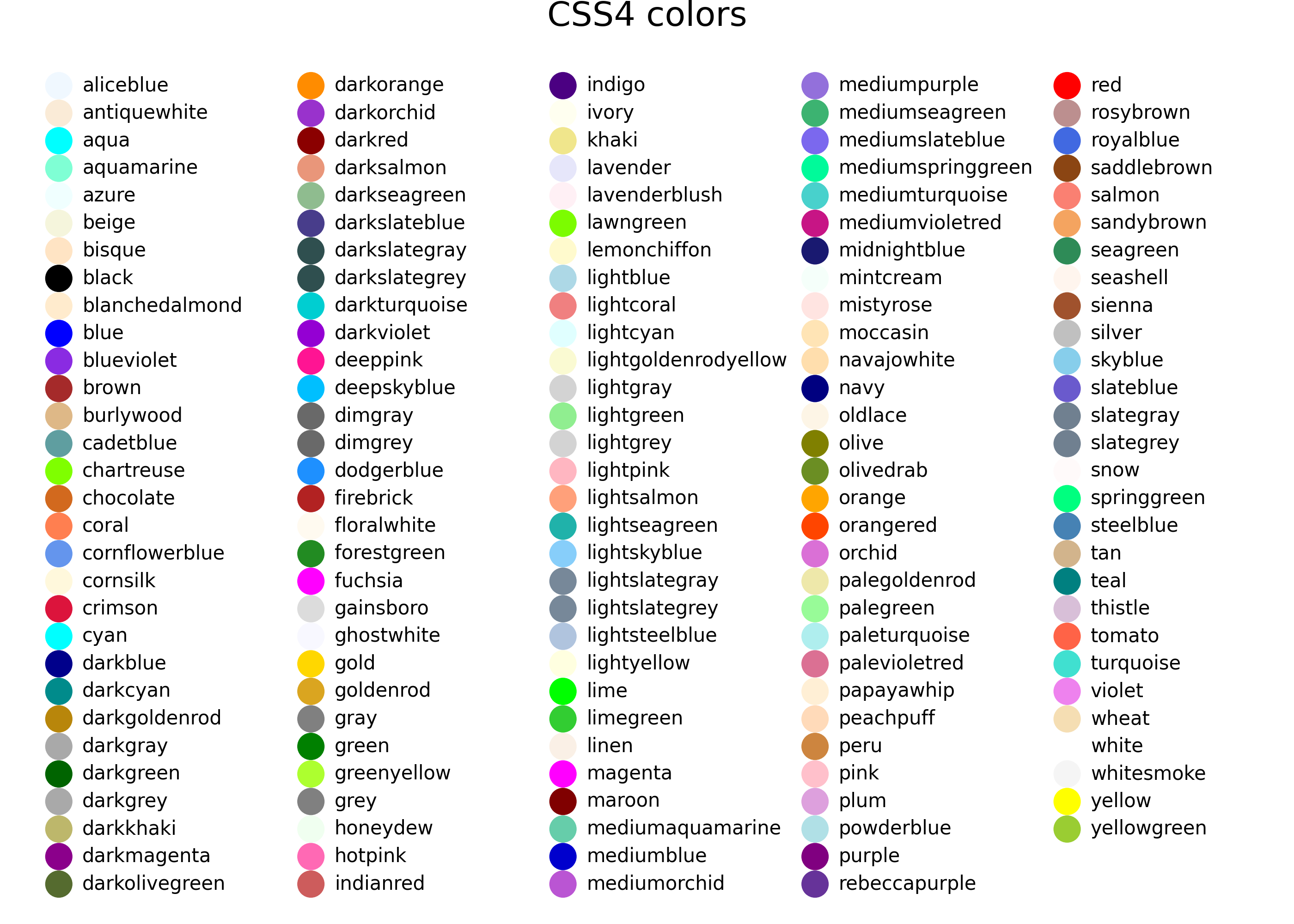 "name": [name for name in mcolors.CSS4_COLORS.keys()],