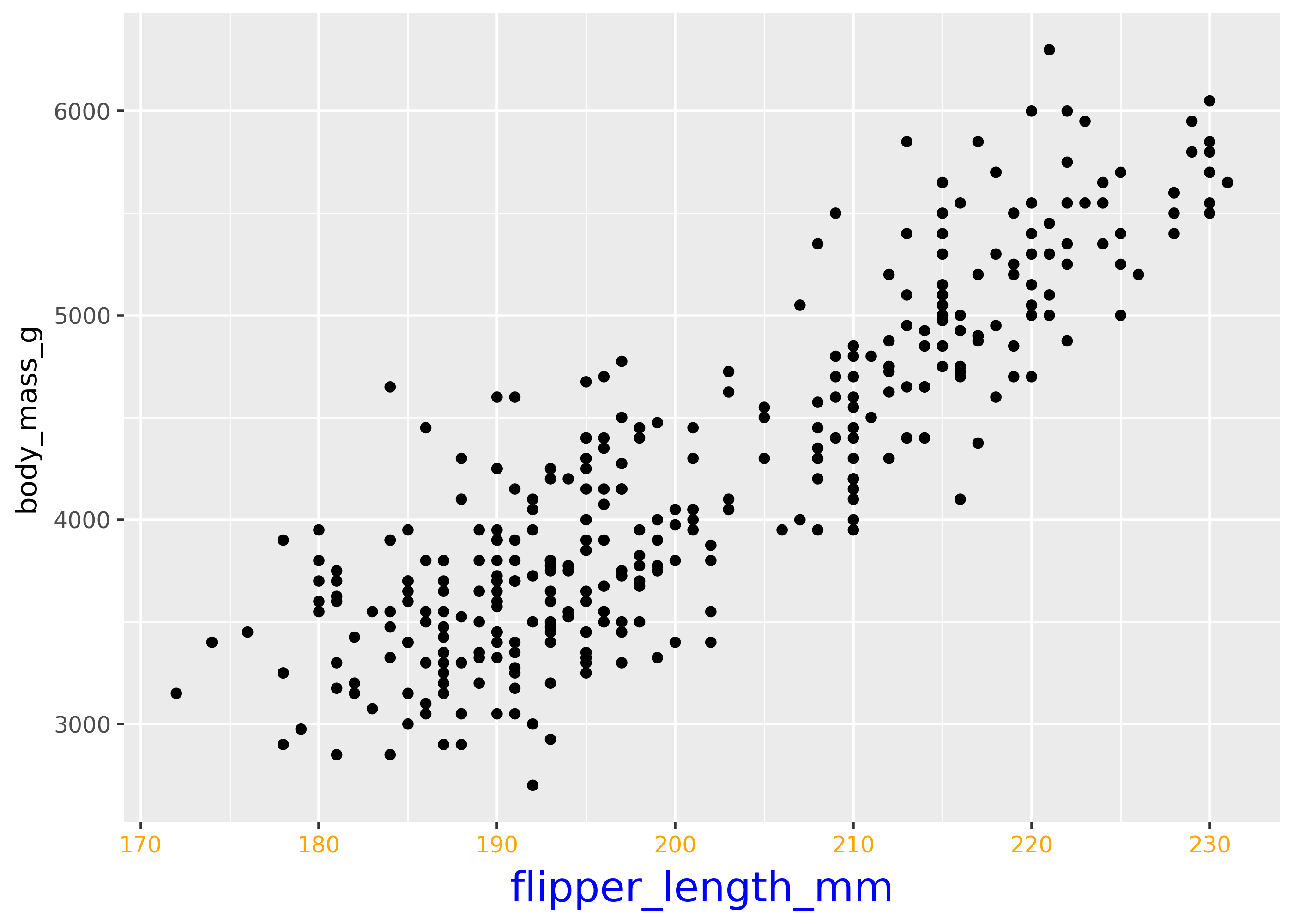 ggplot(penguins, aes("flipper_length_mm", "body_mass_g"))