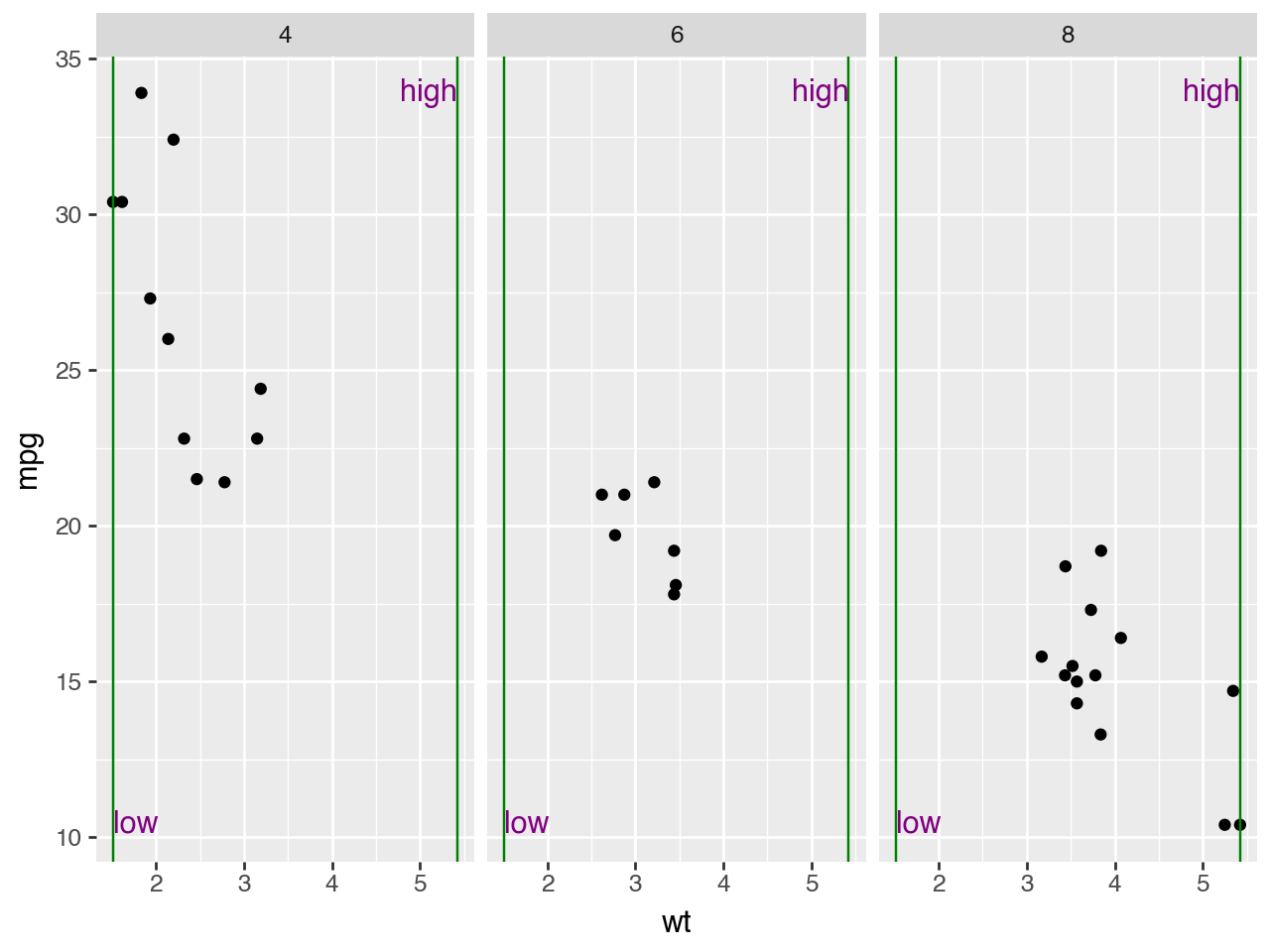 + facet_wrap("cyl")
